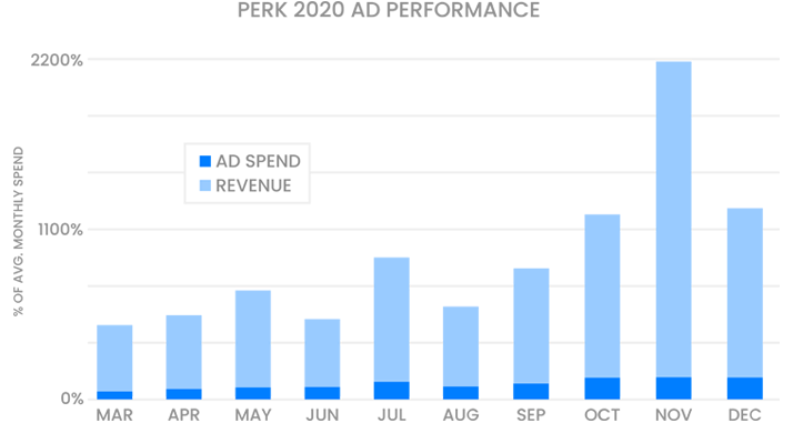 The other two top months were October and December, as seasonal advertising proved effective. Q4 of 2020 saw more total sales than all of 2019, proving much had changed for Perk in such a short timetable and promising a strong future as they head into 2021. It’s a company with an exceptional product that just needed direction and assistance in the world of online marketing, and we’re proud to have been part of their journey.
